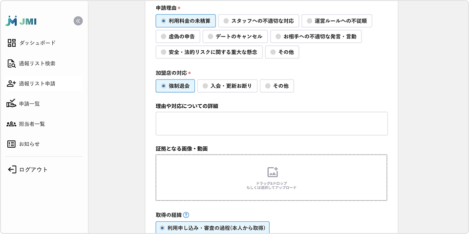 登録された情報はJMIにて共有されます。登録されたユーザーの検索