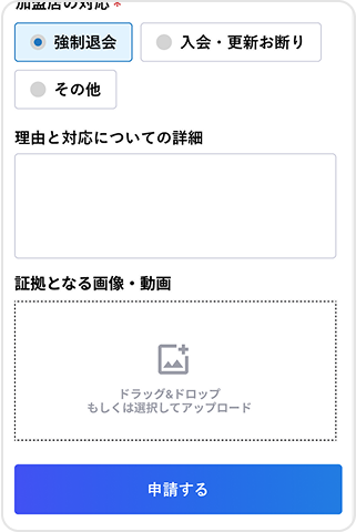 不正な行為や素行不良のユーザーを申請できます。